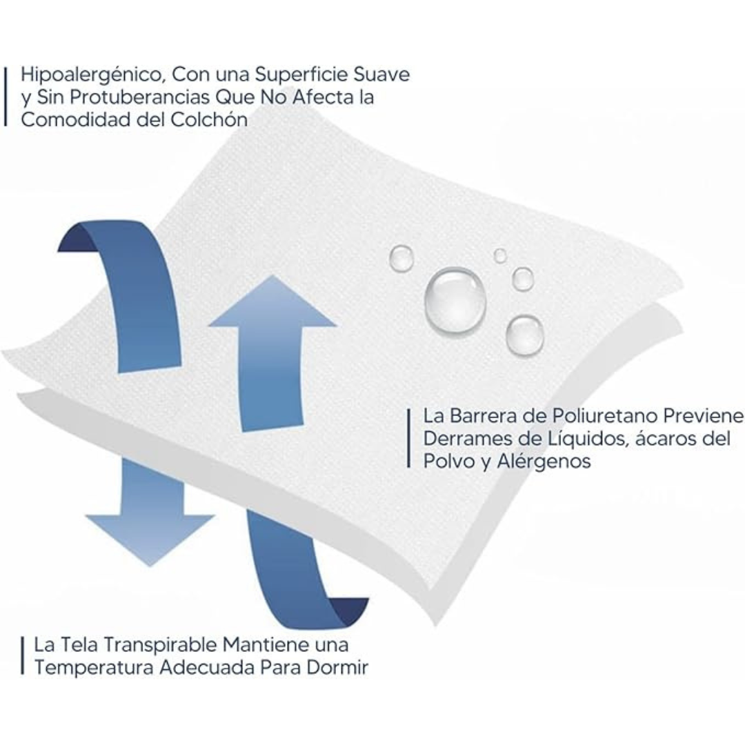 Diseño impermeable, lavable y ajustable, ideal para hogares con niños, mascotas o personas mayores.