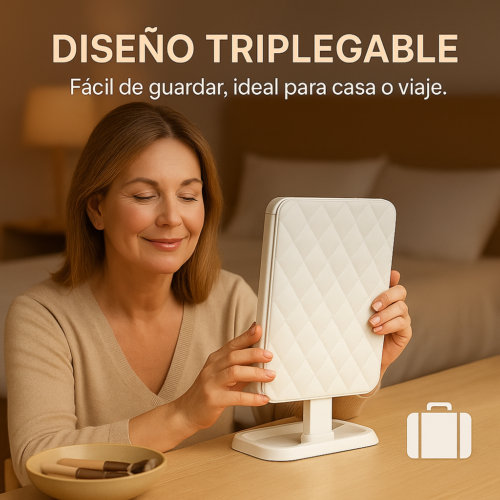 Plegable y sin cable, se adapta a tu rutina y tu espacio. Maquíllate en el baño, dormitorio o incluso de viaje con toda comodidad.