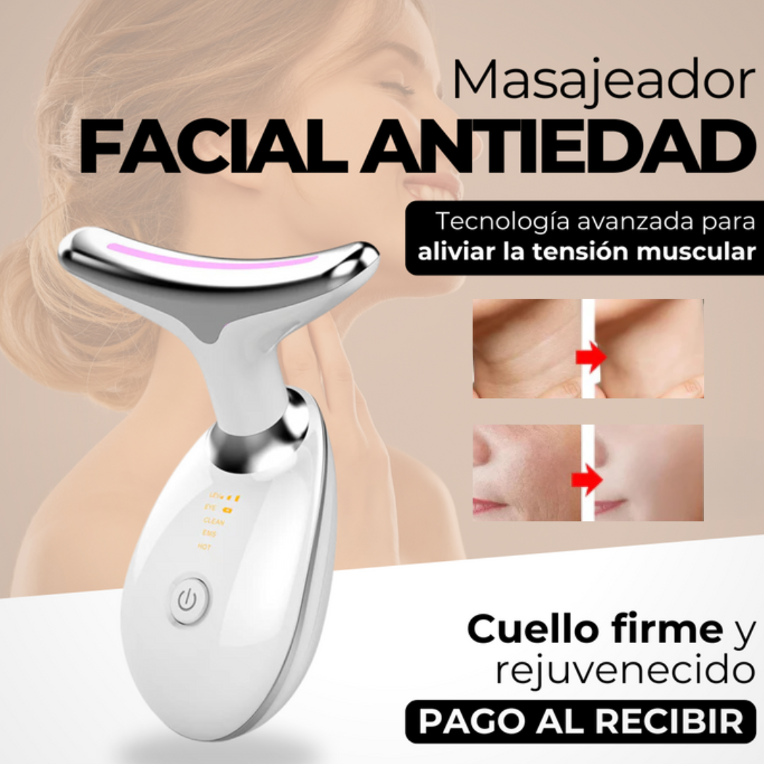 Su tecnología de luz y masaje ayuda a reafirmar y tonificar la piel, suavizando líneas de expresión en minutos.