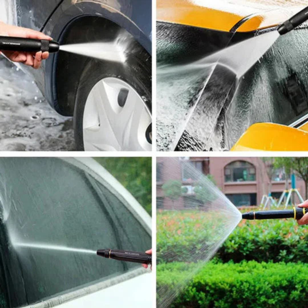 Lava autos, riega plantas, limpia pisos y muebles exteriores con una sola herramienta práctica y portátil.
